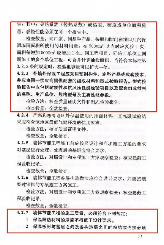 4.2.3:外墻外保溫工程應采用預制構件、定型產品或成套技術,并應由同一供應商提供配套的組成材料和型式檢驗報告。型式檢驗報告中應包括耐候性和抗風壓性能檢驗項目以及配套組成材料的名稱、生產單位、規格型號及主要性能參數。