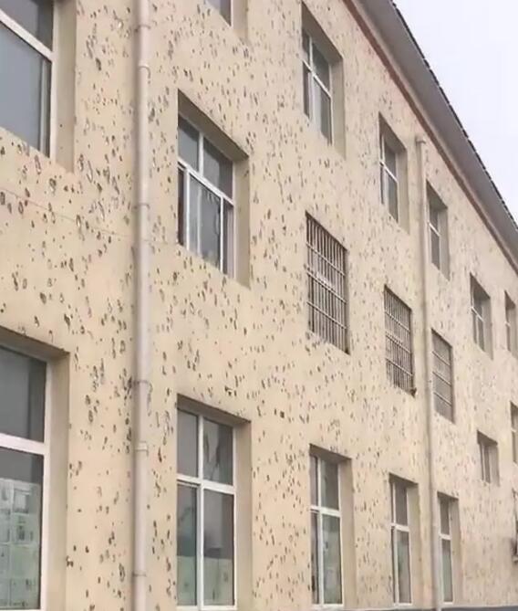 另外網(wǎng)格布是防護(hù)面層的筋骨,一是需要有足夠的耐堿斷裂強(qiáng)力,不能一拉就斷。二是要耐堿,不能幾天過后就粉化了,但現(xiàn)實運用中,還是有大量非標(biāo)網(wǎng)格布充斥市場。在上圖所示冰雹來臨時,并沒有看到網(wǎng)格布應(yīng)該起到的作用。