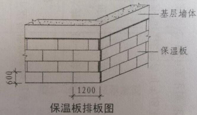 3、保溫板自下向上沿水平方向鋪貼,每排板錯縫1/2板長,角部保溫板交錯設(shè)置。