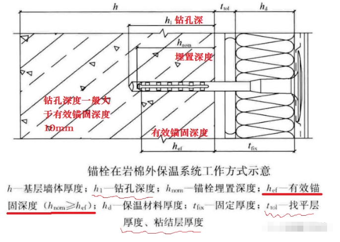 巖棉外保溫錨栓:有效錨固深度、埋置深度?規范條文總結!