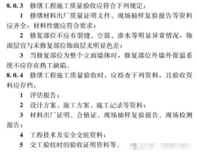 當(dāng)修復(fù)的是整個立面的外墻外保溫時,驗收內(nèi)容如下: