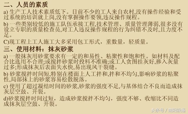 五、抹灰工程出現(xiàn)開(kāi)裂空鼓的六原因