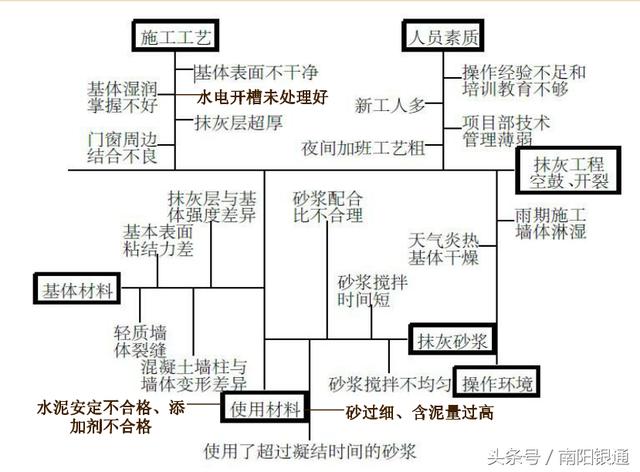 六、抹灰工程出現(xiàn)空鼓開(kāi)裂質(zhì)量缺陷的因果分析圖
