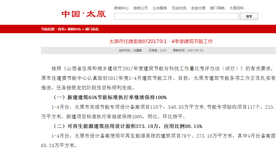 太原市建筑節能順利完成2017年度1-4月階段性目標
